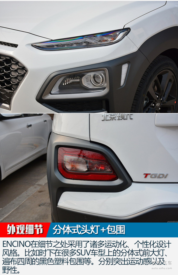 外觀方面,北京現(xiàn)代ENCINO采用最新設(shè)計(jì)理念,整體風(fēng)格更為激進(jìn)動感。其中前大燈組采用分體式布局,搭配上方細(xì)長的LED日間行車燈,中網(wǎng)采用粗獷的網(wǎng)狀格柵,效果更顯運(yùn)動。而車身側(cè)面,新車采用雙色車身+懸浮式車頂?shù)脑O(shè)計(jì),并且在四輪翼子板處配備了寬邊黑色輪眉,突顯該車的越野氣質(zhì)。