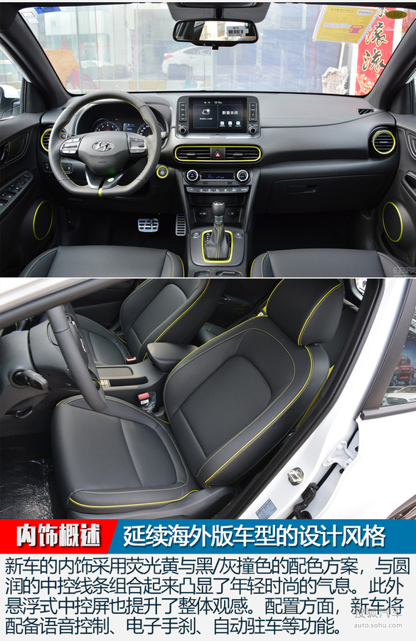 內(nèi)飾方面,新車內(nèi)飾保留了海外版KONA的設(shè)計(jì),懸浮式中控顯示屏配合鮮艷的色彩點(diǎn)綴,視覺效果更加年輕。配置上,將配備語音控制、碰撞輔助、電子手剎、自動駐車以及電動天窗等。