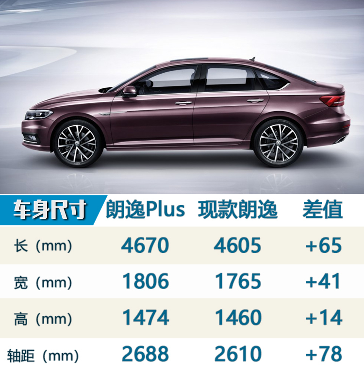 相比現款車型,全新朗逸Plus的側身線條更加修長,傾斜幅度較大的C柱搭配短小且上揚的后備廂蓋,看上去動感十足。車尾部分,新車仍然擁有著十分豐富的線條,細節方面的變化包括采用了新樣式的LED尾燈組和后保險杠下部飾板等。尺寸方面,全新朗逸Plus長寬高分別為4670/1806/1474mm,軸距為2688mm,相比現款車型分別增加了65/41/14mm,軸距則增加了78mm。