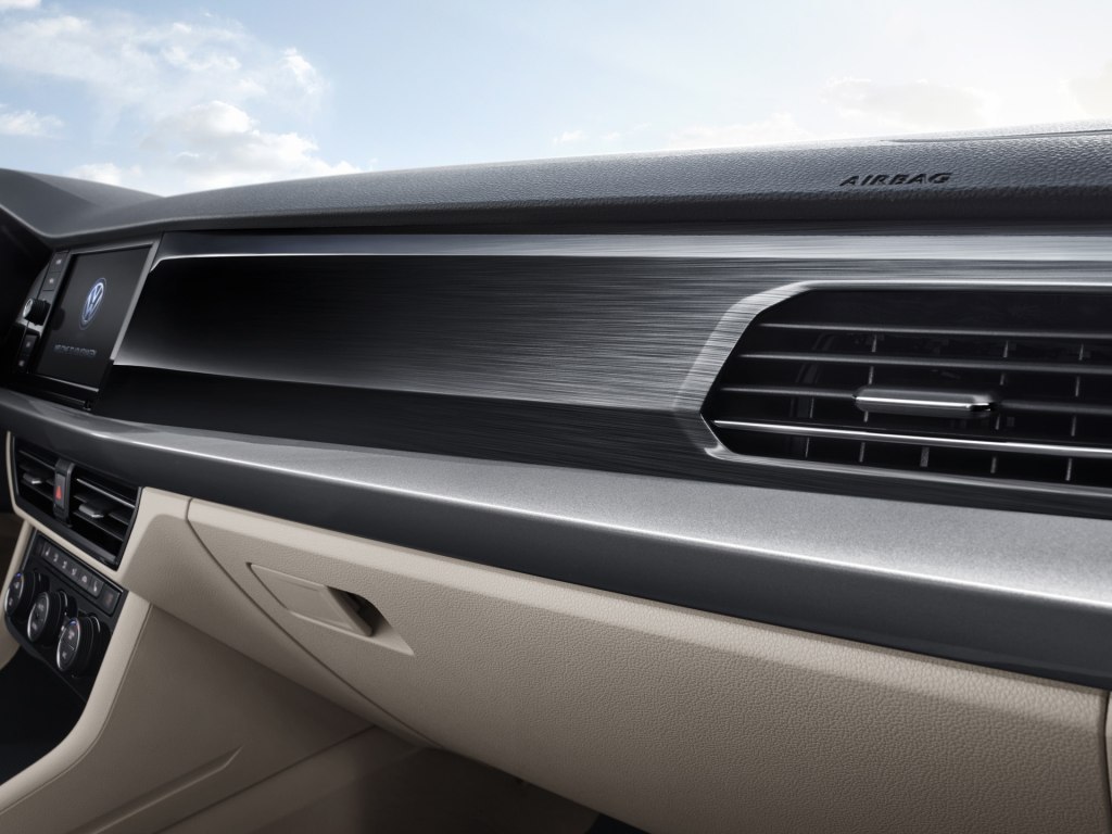 內飾方面,全新朗逸Plus相比現款車型有著明顯的改變,中控臺采用了橫貫式布局,平直的線條和平面飾板的應用使其看上去十分簡潔,中央由上至下放置的是中控屏幕、橫向布置的空調出風口,以及大眾標志性的空調控制區域和擋把區域。此外,新車的三輻式方向盤和儀表盤的造型則與現款車型基本保持一致。