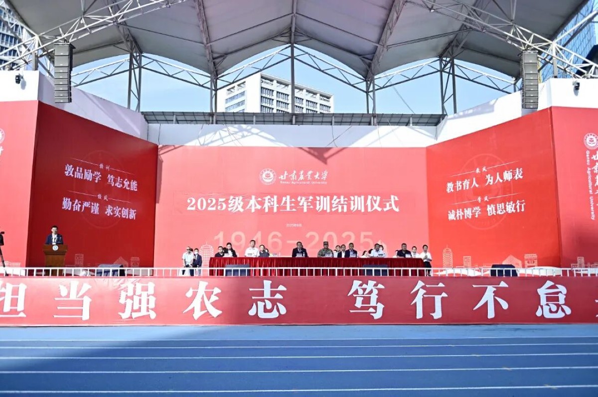 中國甘肅在線蘭州訊 9月14日上午,學校2025級本科生軍訓結訓儀式在青春體育場舉行。副校長王立宗,軍訓團團長,機關相關部門負責人、各學院黨委書記和分管學生工作領導,輔導員、2025級班主任、軍訓教官及全體軍訓學員參加活動。儀式由黨委學生工作部、武裝部負責人主持。