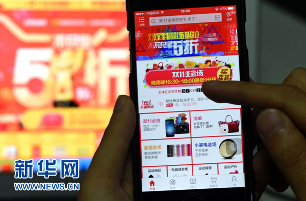 11月11日,一名杭州市民在手機(jī)上瀏覽電商平臺(tái)“雙十一”促銷信息。新華社記者 韓傳號(hào) 攝
