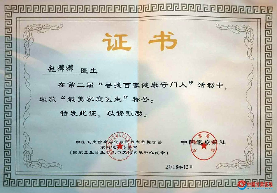 懸壺濟世醫蒼生,妙手回春解疾痛。日前,全國第二屆“尋找百家健康守門人”活動頒獎儀式在北京國際會議中心舉行。麥積區馬跑泉中心衛生院榮獲全國“促進家庭健康先進醫院”、該院院長謝全紅榮獲“守護百姓健康優秀院長”、馬跑泉鎮黑王村衛生室村醫趙娜娜榮獲“最美家庭醫生”榮譽稱號。
