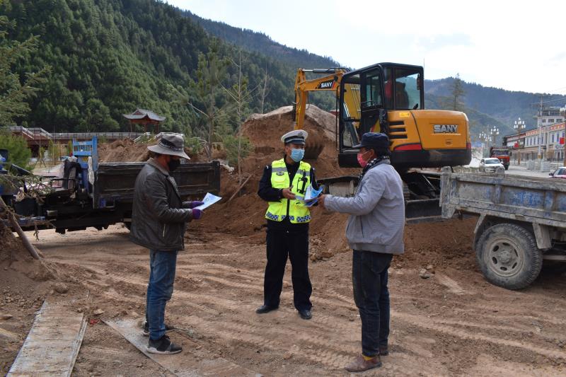 中國甘肅在線訊(通訊員:王小強)為確保轄區企業疫情防控、復工復產安全穩定,遏制各類交通事故的發生,甘肅省迭部縣公安局交警大隊組織民警深入轄區施工企業進行疫情期間復工復產交通安全工作大檢查,開展道路交通安全知識宣傳活動。