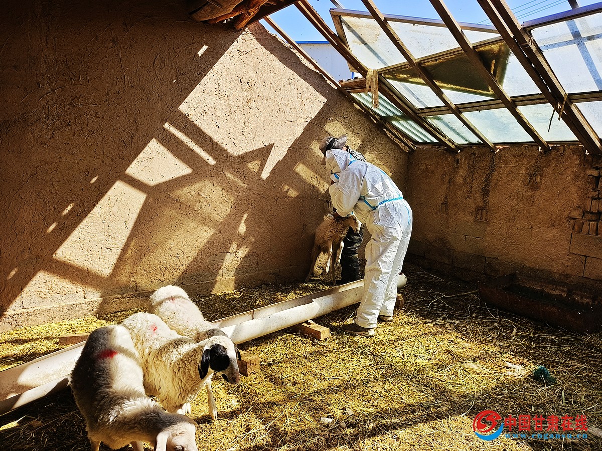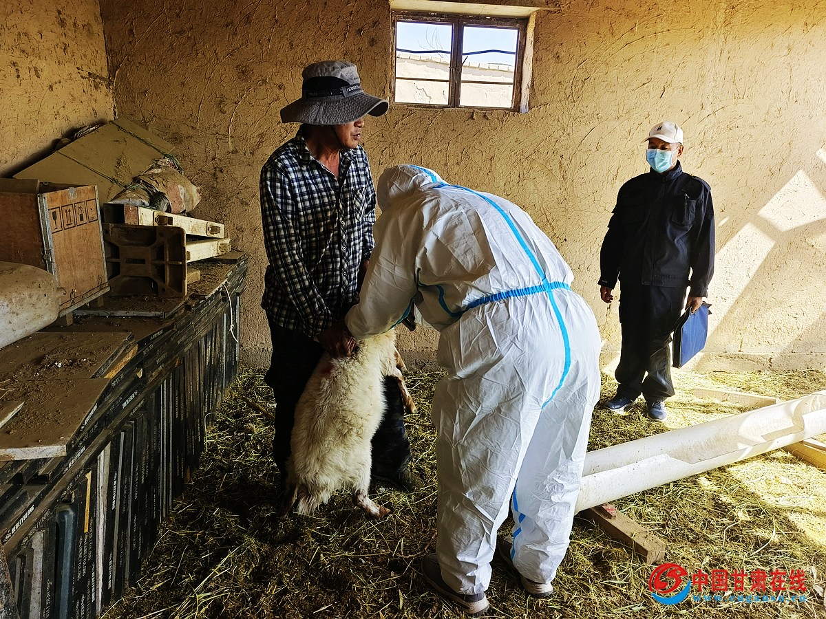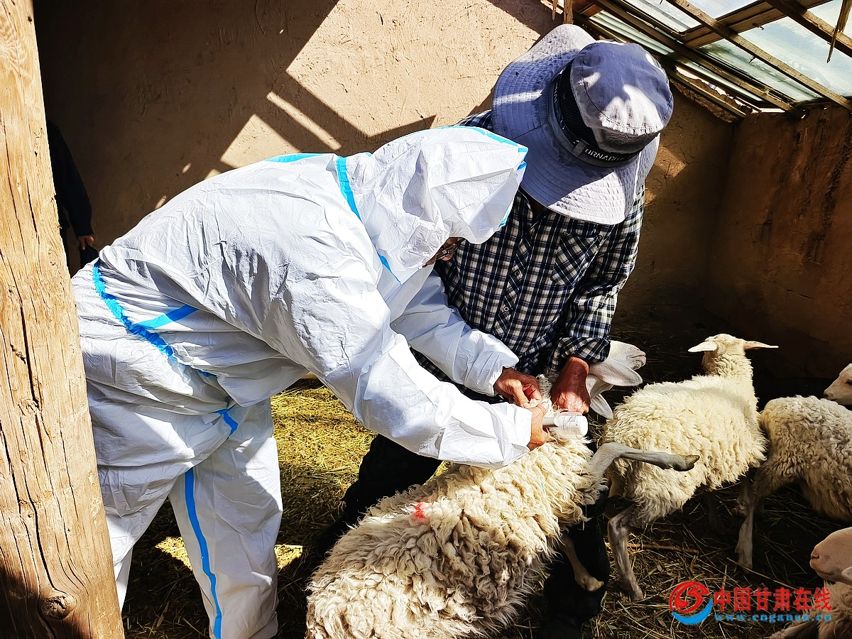 中國甘肅在線瓜州訊 秋季是做好動物疫情防控工作的關鍵時期,為切實保障轄區(qū)居民群眾的身心健康,有效控制畜禽疫病的發(fā)生,確保重大動物疫病防控措施落到實處。近日,瓜州縣淵泉鎮(zhèn)張芝社區(qū)與畜牧站工作人員一同上門免費為轄區(qū)養(yǎng)羊戶的牲畜注射口蹄疫和小反芻獸疫病毒疫苗,為養(yǎng)羊戶免費發(fā)放消毒劑,全力打好秋季動物“防疫針”,筑牢動物防疫“安全網(wǎng)”。