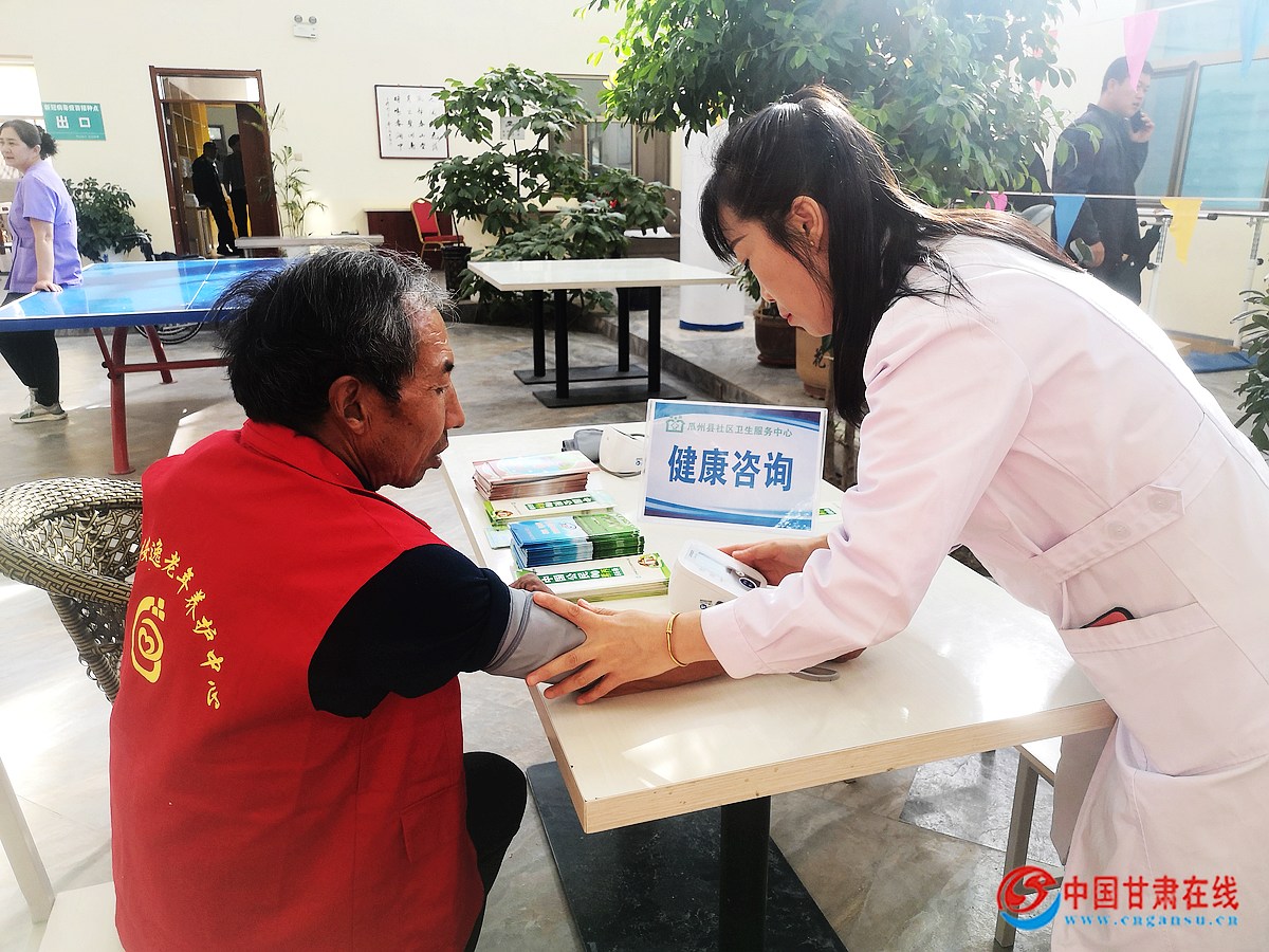 中國甘肅在線瓜州訊 金秋送爽,丹桂飄香。在重陽節來臨之際,為弘揚孝老、敬老、愛老優秀中華傳統,10月21日下午,瓜州縣淵泉鎮張芝社區聯合社區衛生服務中心醫護人員開展了“情暖重陽節 義診送健康”便民服務活動,參加本次活動的老年人共有40余人。