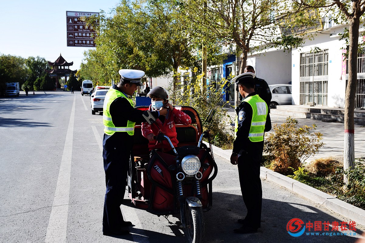 中國甘肅在線瓜州訊(通訊員:聶小洋)為扎實推進交通安全治安管理整治行動深入開展,全面貫徹落實“嚴管十條”工作要求,切實降低交通事故風險,提升駕乘人員安全出行意識,維護人民群眾生命財產安全。近日,瓜州縣鎖陽城派出所組織民輔警圍繞“除隱患、查違法、保安全”開展道路交通安全整治行動,嚴查各類道路交通違法行為。