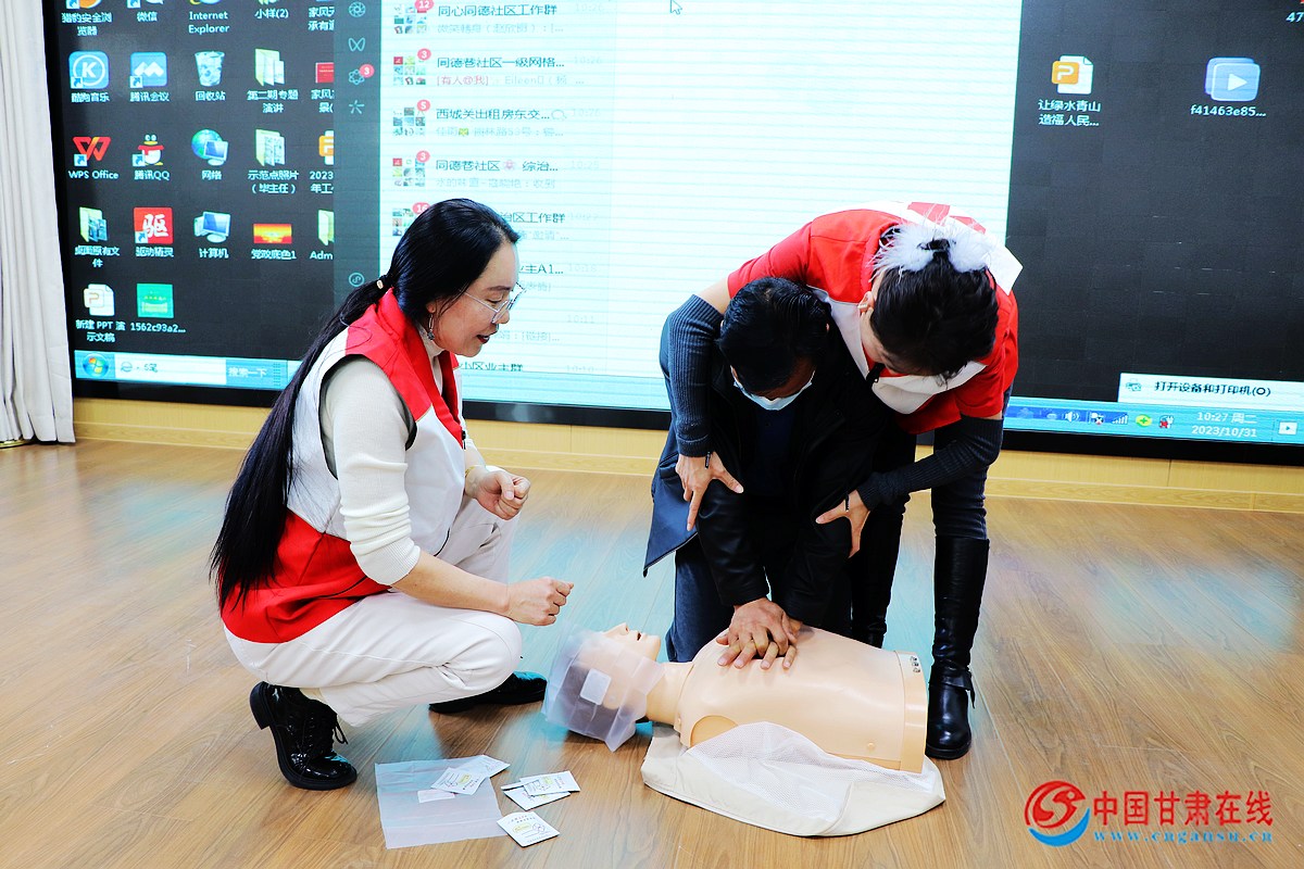 中國甘肅在線肅州訊 為廣泛宣傳普及急救知識,提升群眾對急救現(xiàn)場救護(hù)工作的參與度,加大應(yīng)急救護(hù)知識的普及力度,增強(qiáng)居民群眾突發(fā)事故造成傷害的自救互救能力,10月31日,肅州區(qū)紅十字會走進(jìn)東北街街道同德巷社區(qū)開展“百場救護(hù)培訓(xùn)基層行”應(yīng)急救助專題培訓(xùn)活動,轄區(qū)居民群眾、黨員干部及社區(qū)干部共計300余人參加活動。