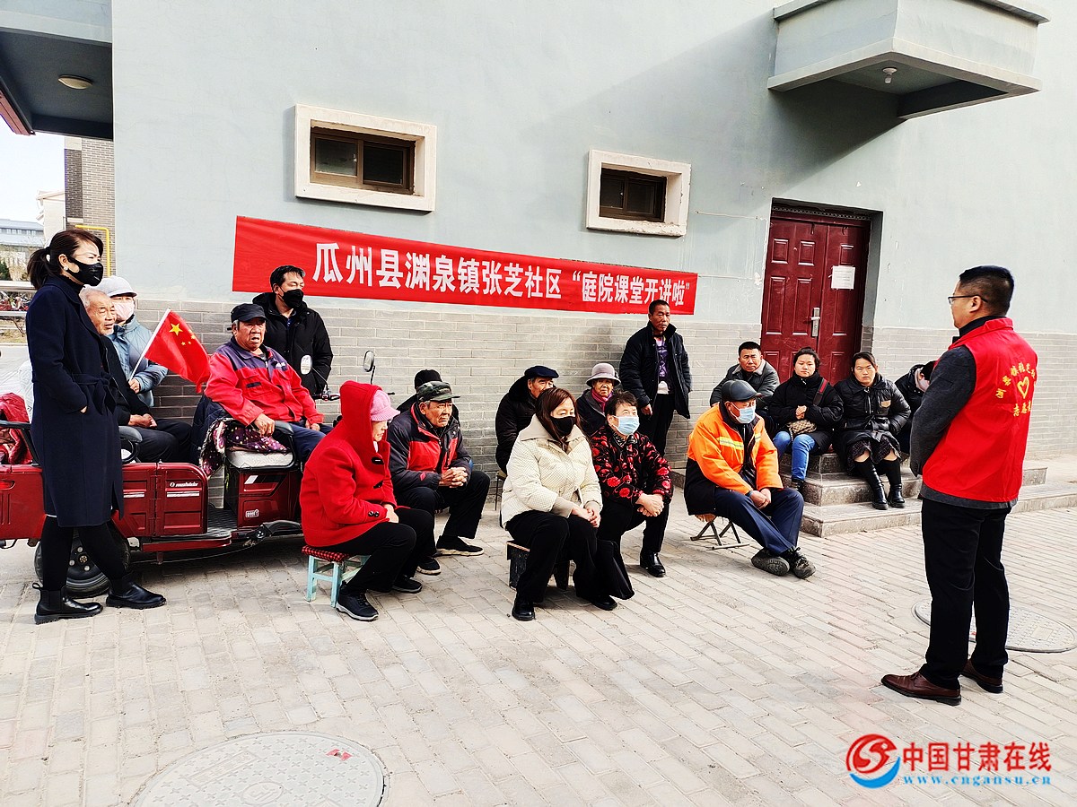 當(dāng)前,瓜州縣淵泉鎮(zhèn)張芝社區(qū)黨委正如火如荼的開展學(xué)習(xí)貫徹習(xí)近平新時(shí)代中國特色社會主義思想。據(jù)了解,社區(qū)黨委現(xiàn)有黨員中60歲以上的占三成。他們呈現(xiàn)年齡大、行動(dòng)困難、接受理論學(xué)習(xí)和培訓(xùn)的機(jī)會相對較少。為此,社區(qū)黨委將理論課堂下移至百姓間,聯(lián)合縣委黨校,發(fā)揮紅色理論教育志愿者的作用,以支部為單位,創(chuàng)新開設(shè)起黨員群眾家門口的“庭院課堂”。止目前,共開展“庭院課堂”4場次,上門送學(xué)20余人次,黨員參與率100%,確保學(xué)習(xí)教育“一個(gè)都不能少”,保證了學(xué)習(xí)教育的全覆蓋。