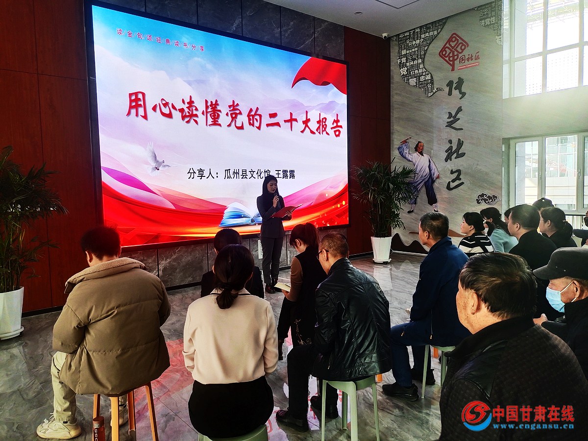 中國甘肅在線瓜州訊 為深入學習貫徹黨的二十大精神和習總書記新時代中國特色社會主義思想,認真貫徹習近平總書記系列重要講話精神,瓜州縣淵泉鎮張芝社區婦聯聯合轄區共建單位開展“讀金句、頌經典、講感悟 ”讀書分享活動,引導婦聯干部從經典語錄中感悟偉人精神,汲取奮進力量,進一步堅定聽黨話、跟黨走的信念信心,以昂揚風貌在新時代新征程上展現新氣象新作為。