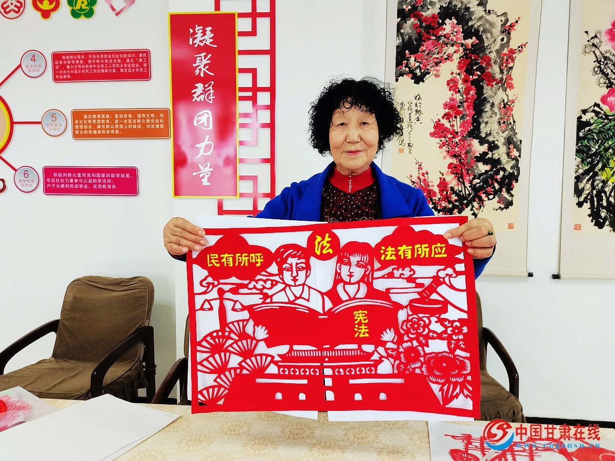 “秀剪紙+曬書法”,讓普法宣傳“活”起來。為傳承和弘揚中華優秀傳統文化,將法治元素融入非遺文化元素,借助剪紙和書法展現法治亮點,以群眾喜聞樂見的方式增強普法宣傳效果。榆林社區邀請民間藝術家何淑蘭和書法愛好者金發賢,現場制作和書寫主題鮮明的剪紙、書法作品,把獨創的剪紙和書法作品將法治元素完美融合,不僅弘揚了我國傳統文化剪紙和書法藝術,傳播了法治精神,也是用一種普法“新說法”,讓群眾既能領略到剪紙和書法的藝術魅力,更讓法治元素走進人們心里。