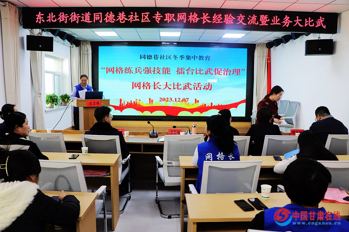 中國甘肅在線肅州訊 為進一步提升基層社會治理現代化建設水平,全面提升網格長的素質能力,營造網格長之間以賽促學、以學促干的良好氛圍,提升干事創業精氣神,12月7日下午,肅州區東北街街道同德巷社區開展“網格練兵強技能 擂臺比武促治理 ”網格長技能大比武活動,推動冬季集中教育活動落實見效。