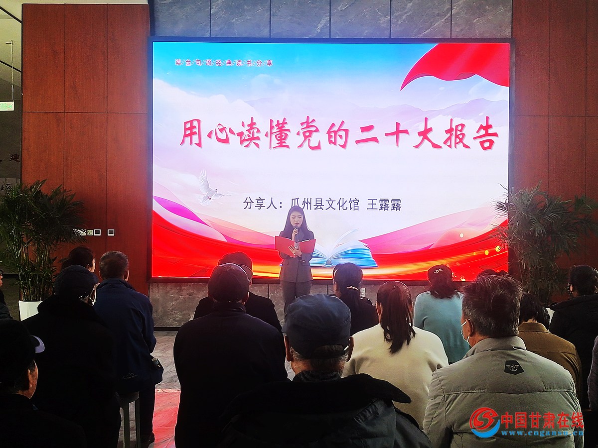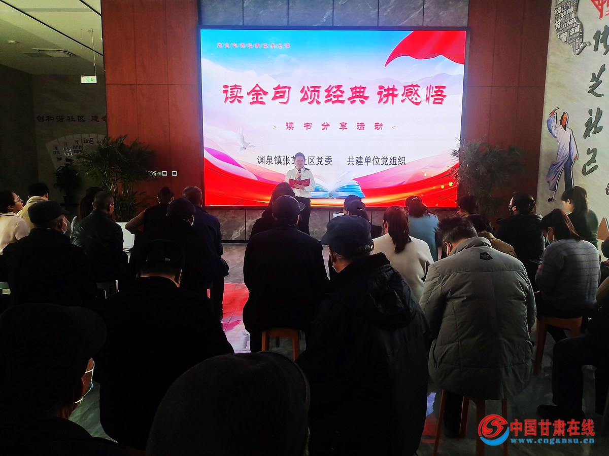 中國甘肅在線瓜州訊 為深入學習貫徹習總書記新時代中國特色社會主義思想,推動學習教育走深走實走心。近期,淵泉鎮張芝社區聯合駐區單位黨組織開展了“讀金句、頌經典、講感悟 ”讀書分享活動,吸引了轄區16個單位黨組織和80多名黨員參加。