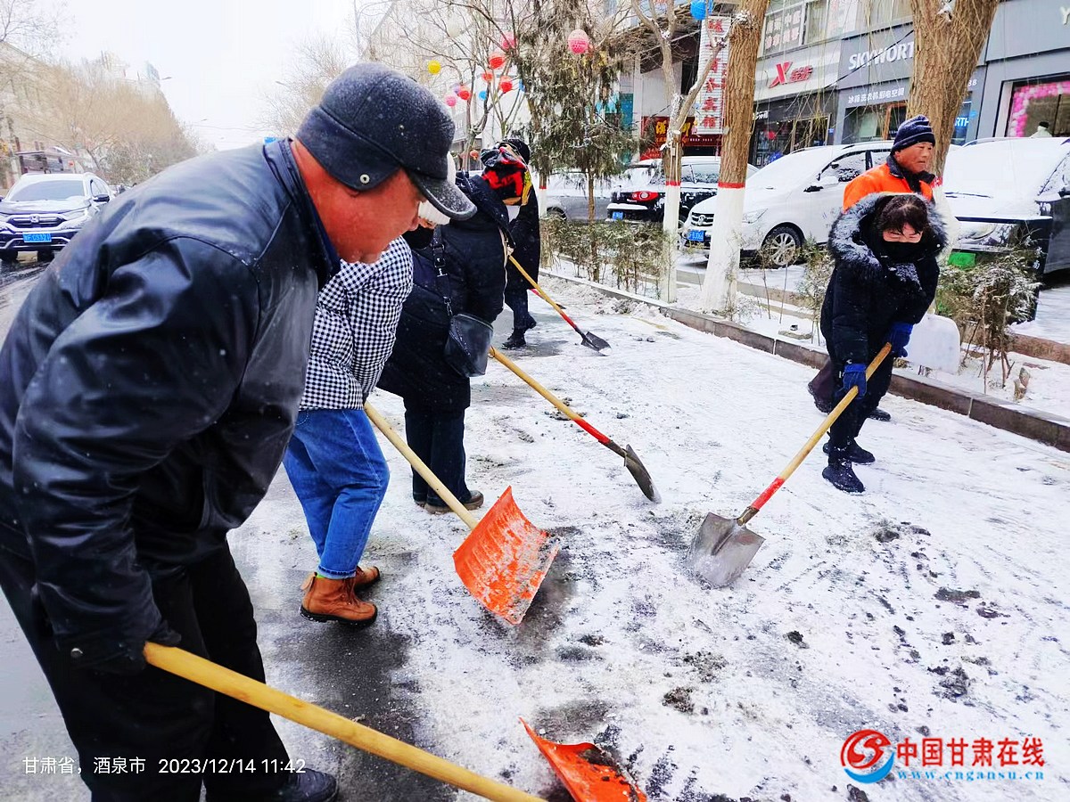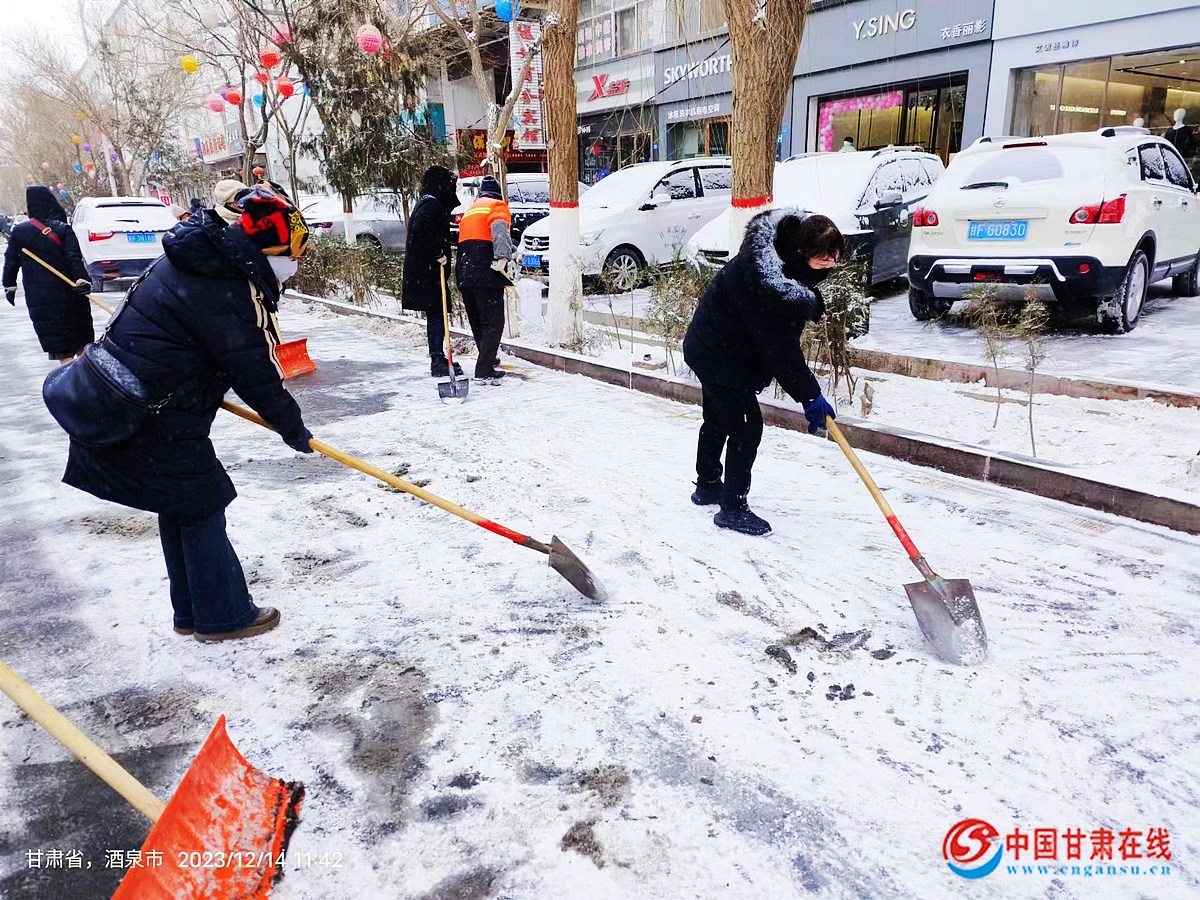 中國甘肅在線瓜州訊 12月13日夜間我縣迎來降雪天氣,為維護降雪后環境秩序,保障道路暢通和居民出行安全,12月14日,瓜州縣淵泉鎮張芝社區婦聯“以雪為令”,冒著零下二十多度的嚴寒,積極組織巾幗志愿者開展掃雪除冰活動,她們忙碌的身影成為了寒冬里一道亮麗的風景線。