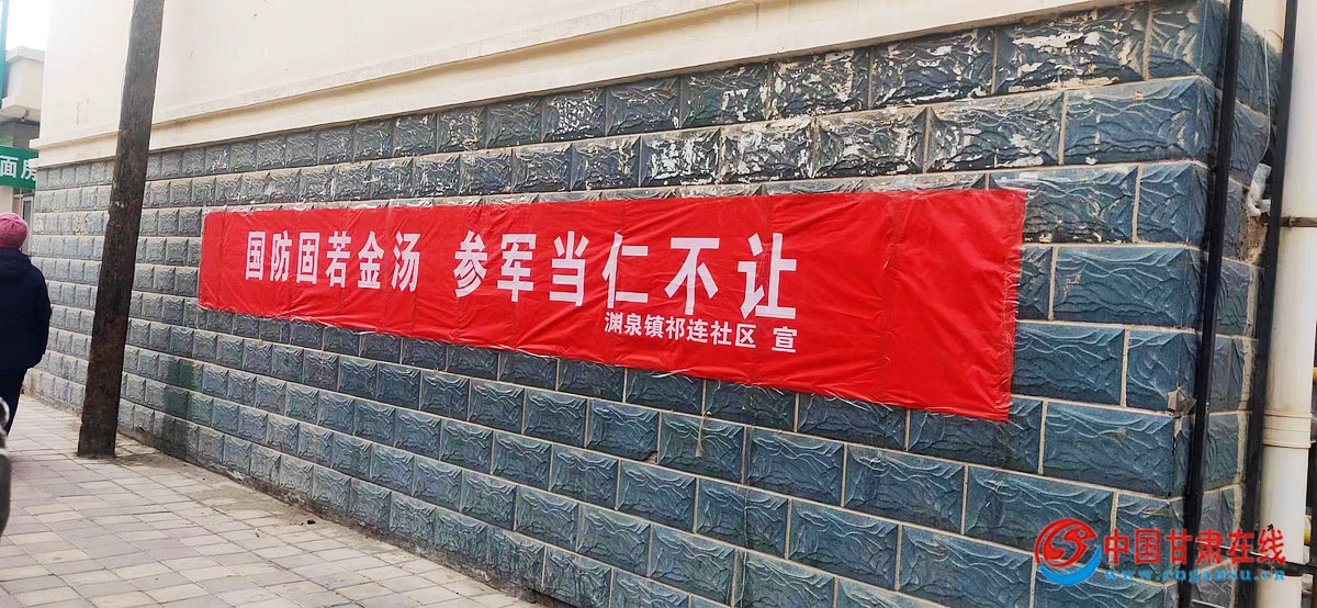 中國甘肅在線瓜州訊 為扎實做好2024年征兵宣傳工作,激發轄區廣大適齡青年踴躍參軍的積極性,營造濃厚的參軍氛圍,近日,淵泉鎮祁連社區多形式多渠道開展宣傳動員,著力打通征兵宣傳動員“最后一百米”。