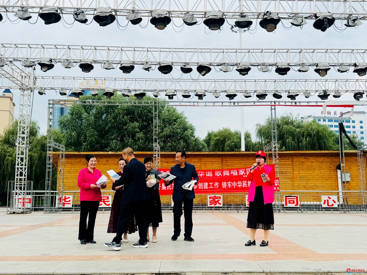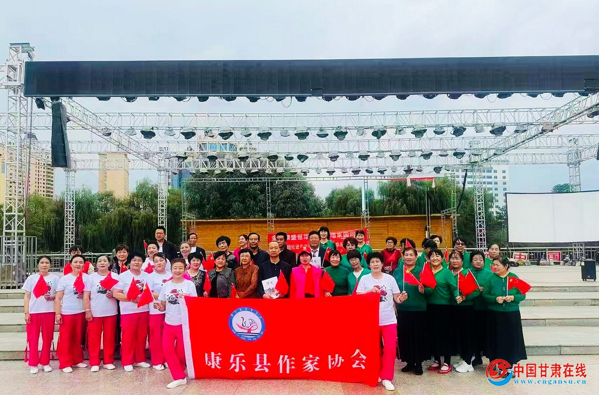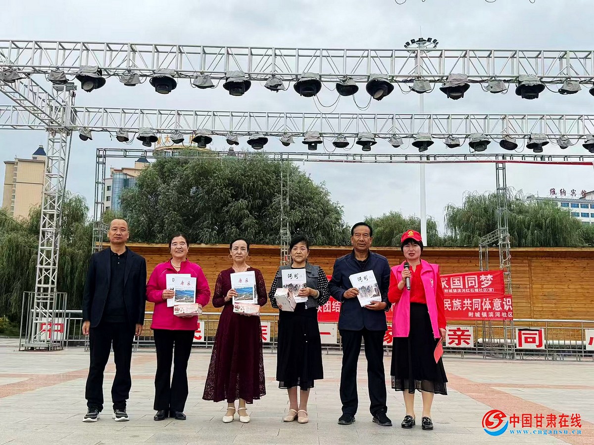 中國甘肅在線康樂訊 2025年9月26日,由康樂縣附城鎮濱河紅石榴社區主辦,康樂縣作家協會協辦的“金秋頌盛世華誕 歌舞唱家國同夢”慶“國慶”暨文學進社區贈書活動在濱河文化廣場民族團結主題公園舉行。康樂縣民族團結進步形象代言人、縣作家協會主席馬曉春,縣作家協會會員、濱河紅石榴社區黨支部副書記馬蘭花,縣作家協會楊永忠,社區與轄區共駐共建單位、退休黨員、各社會團志愿者、轄區部分居民參加了活動。