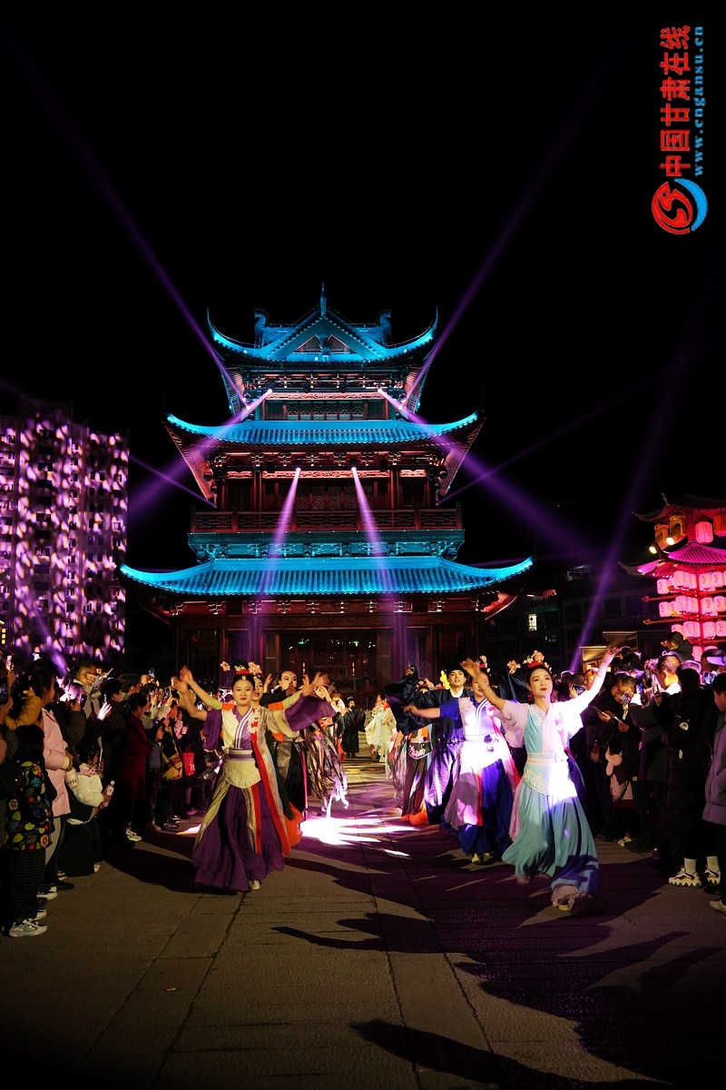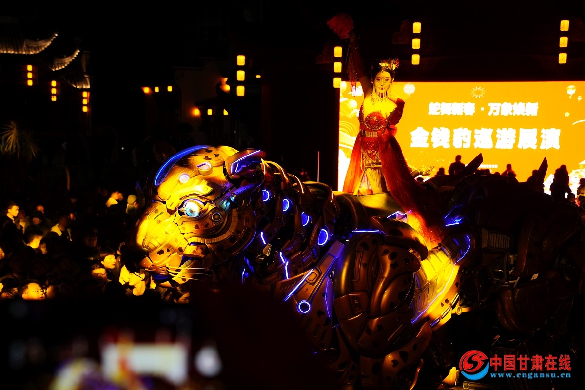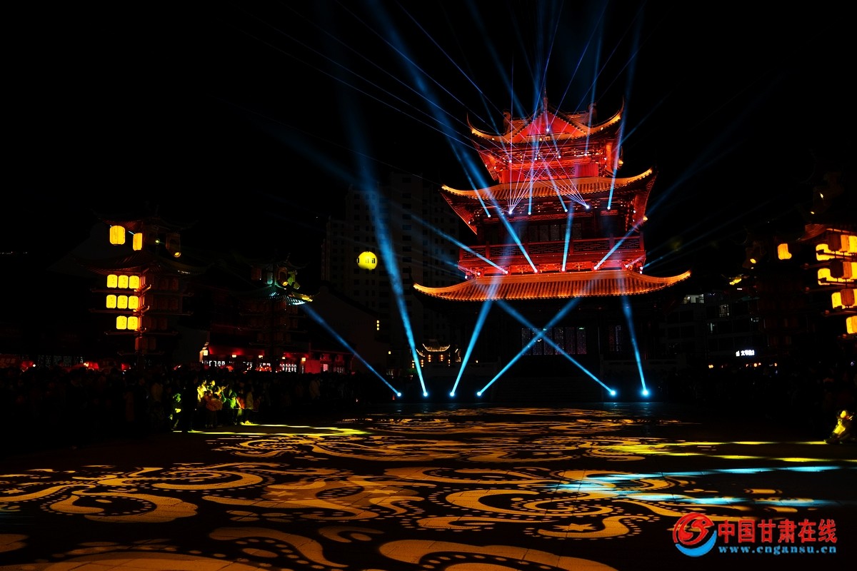 中國(guó)甘肅在線武都訊(通訊員 胡本平 李劍超 )蛇舞新春,萬(wàn)象煥新。2月9日晚,萬(wàn)象景區(qū)萬(wàn)象街燈光演藝夜游活動(dòng)盛大啟幕。