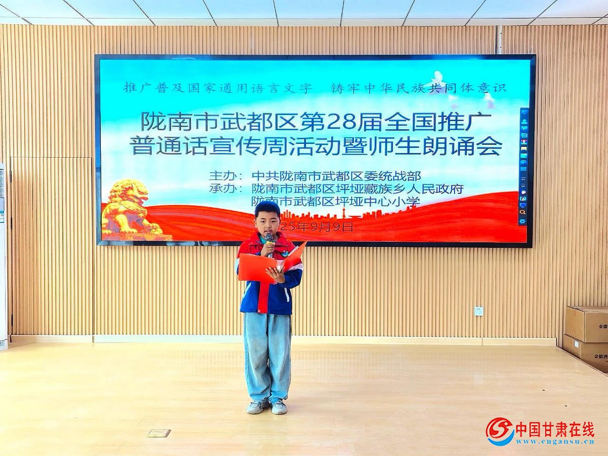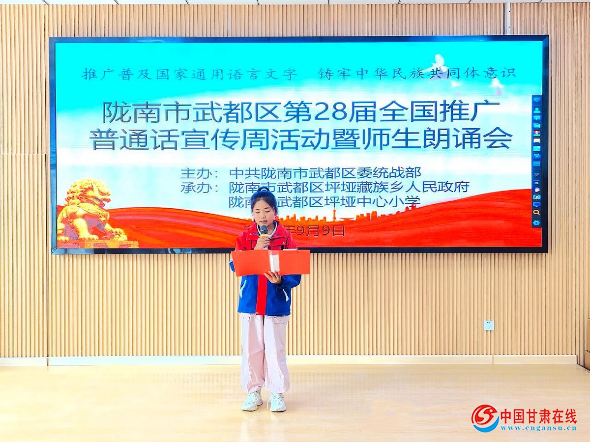 中國甘肅在線武都訊(通訊員 白雪茹 李瀟)為推動國家通用語言文字規(guī)范化、標(biāo)準(zhǔn)化,鑄牢中華民族共同體意識,9月9日,武都區(qū)委統(tǒng)戰(zhàn)部緊扣“推廣普及國家通用語言文字 鑄牢中華民族共同體意識”主題,在坪埡中心小學(xué)組織開展第二十八屆全國推廣普通話宣傳周活動。