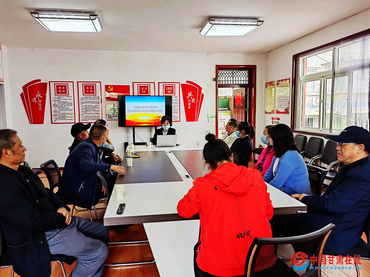 中國甘肅在線秦州訊 為深化企業退休人員社會化管理服務工作,增強企業退休人員對社區服務的認同感、歸屬感和幸福感,大城街道共和巷社區新時代文明實踐站舉辦了企業退休人員反詐騙專題知識講座,宣傳領取養老金實名認證政策,指導企業退休職工通過手機APP進行在線實名認證,為現場20多名企業退休人員送去了關懷。