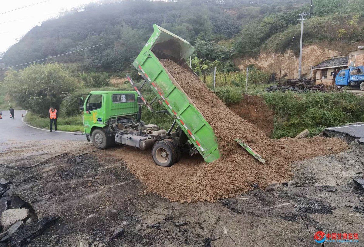 中國甘肅在線秦州訊 9月18日,受持續降雨影響,S207線K181+244-270(清水縣郭川鎮解家灣村)路段突發路面塌陷,嚴重影響道路通行安全。