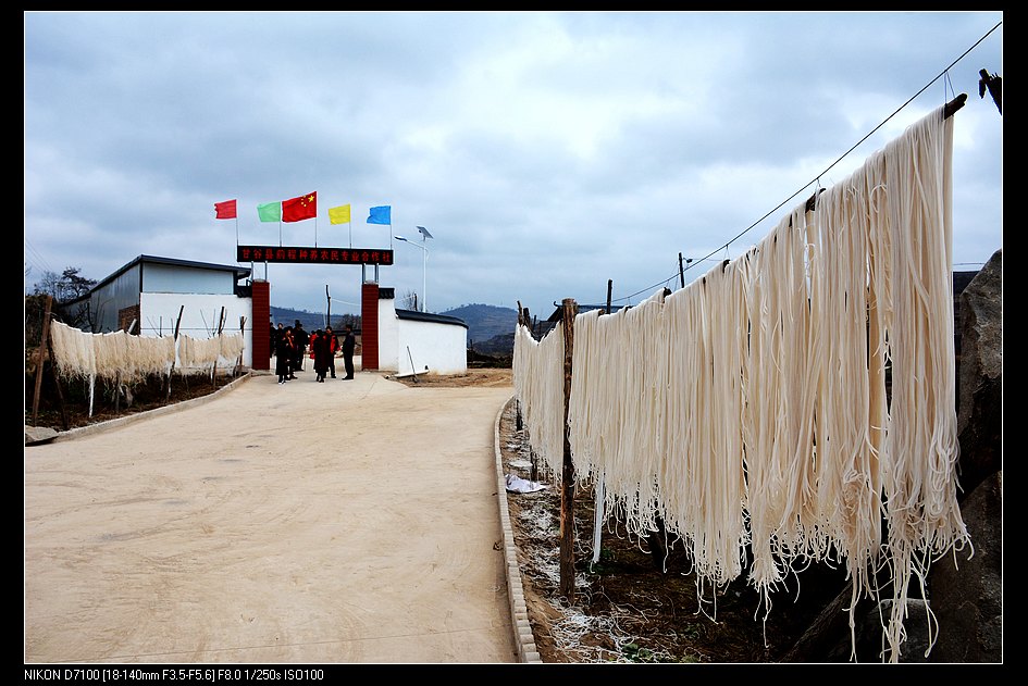 沿主巷道向東前行不遠,村東建有甘谷縣前程種養(yǎng)農(nóng)民專業(yè)合作社,合作社依托當?shù)丶壹覒魬舴N植馬鈴薯(俗稱“洋芋”)的傳統(tǒng)優(yōu)勢,繼承老一輩人的手工制粉手藝生產(chǎn)手工粉條。手工粉條韌性好,口感好,很受消費者歡迎。漫步在中岔村,路旁、院邊的橫木上掛滿了正在晾曬的粉條,成為一道別樣的風景。合作社前岔道處也立有一塊巨石,上書“紫氣東來”幾個大字。合作社東南有一蜿蜒向下的水泥路,與主巷道相連接,通往另一坡地上的中岔自然村川口村。中岔村與川口村之間有一溝谷,溝底有筑壩蓄水而成的湖泊,給中岔增添了幾分韻致,構成了一幅和諧美麗的鄉(xiāng)村畫圖。
